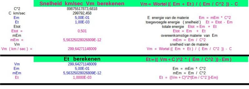 De energie Et die is toegevoegd (snelheid) is uiteindelijk materie geworden.
